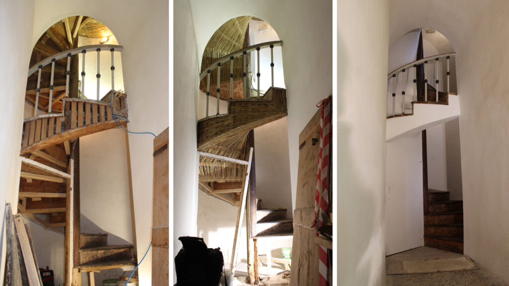 Progettazione, messa in sicurezza e restauro conservativo/statico della struttura lignea della scala della cupola, dell’attinente controsoffittatura ad arelle, del solaio ligneo, della relativa pavimentazione lapidea (art. 27) e delle superfici rifinite a calce.