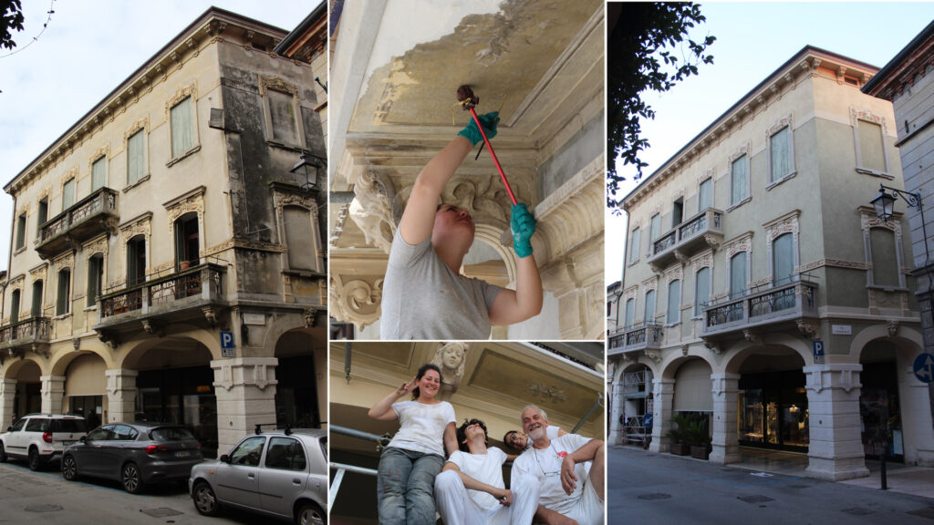 Restauro conservativo dei cementi decorativi e delle decorazioni pittoriche delle pareti di facciata (Liberty e della seconda metà dell’Ottocento). Consolidamento statico degli intonaci decorati.